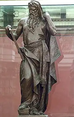 The majority of scholars see the biblical Moses as a legendary figure, while retaining the possibility that Moses or a Moses-like figure existed in the 13th century BCE.[9][10][11][12][13] Rabbinic Judaism calculated a lifespan of Moses corresponding to 1391–1271 BCE;[14] Jerome suggested 1592 BCE,[15] and James Ussher suggested 1571 BCE as his birth year.[c][d] Moses has often been portrayed in art, literature, music and film, and he is the subject of works at a number of U.S. government buildings.