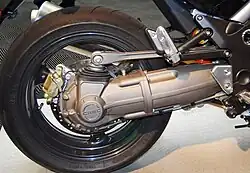 The Breva 1100, Griso, Norge, Bellagio, Stelvio and 1200 Sport feature Guzzi's recently patented swingarm system, marketed as Compact Reactive Shaft Drive – also known as Ca. R.C. or CARC – introduced with the Breva 1100 in 2005. The system separates the shaft final drive's torque reaction from the suspension via floating torque arms and thereby eliminates the abruptness typical of shaft drive systems on acceleration or throttle-release – still providing a quiet, reliable and low maintenance drive system. Reviewers have observed excellent braking performance and drive train smoothness attributable to the CARC system.[33][34]