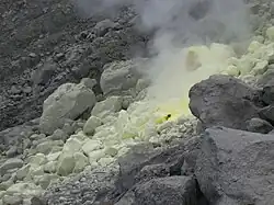 The volcanic history of Mount Apo is poorly known but eruptions have produced andesitic-to-dacitic lava. A line of solfataras extend from the southeast flank at an elevation of 2,400 m (7,874 ft) to the summit. Mount Apo is not known to have had historical eruptions, and was incorrectly attributed to be the source volcano of the 1641 eruption of Mount Melibengoy, also in Mindanao.[9]
