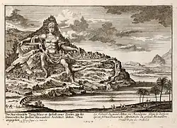 In Greek mythology, Athos is the name of one of the Gigantes that challenged the Greek gods during the Gigantomachia. Athos threw a massive rock at Poseidon which fell in the Aegean Sea and became Mount Athos.[24] According to another version of the story, Poseidon used the mountain to bury the defeated giant.