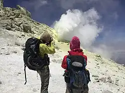 Fumarole at 5,550 metres (18,210 ft) elevation on the volcano's slope