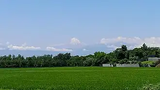 Mount Damavand (Persian: دماوند [dæmɒːvænd] ) is a dormant stratovolcano and is the highest peak in Iran and Western Asia, the highest volcano in Asia, and the 3rd highest volcano in the Eastern Hemisphere (after Mount Kilimanjaro and Mount Elbrus), at an elevation of 5,609 metres (18,402 ft).[8][9][a] Damāvand has a special place in Persian mythology and folklore. It is in the middle of the Alborz range, adjacent to Varārū, Sesang, Gol-e Zard, and Mīānrūd. It is near the southern coast of the Caspian Sea, in Amol County, Mazandaran Province, 66 km (41 mi) northeast of the city of Tehran.[10]