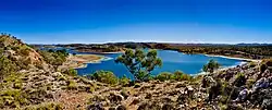 In the 2021 census, the town of Mount Isa had a population of 18,317 people,[2] making Mount Isa the administrative, commercial and industrial centre for the state's vast north-western region. Although situated in an arid area, the artificial Lake Moondarra[7] 19 kilometres (12 mi) north of the city on the Leichhardt River provides both drinking water and an area for watersports, birdwatching and recreation. Locals often refer to Mount Isa as "The Isa".[8]