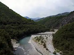 Block mountains are caused by faults in the crust: a plane where rocks have moved past each other. When rocks on one side of a fault rise relative to the other, it can form a mountain.[25] The uplifted blocks are block mountains or horsts. The intervening dropped blocks are termed graben: these can be small or form extensive rift valley systems. This kind of landscape can be seen in East Africa,[26] the Vosges and Rhine valley,[27] and the Basin and Range Province of Western North America.[28] These areas often occur when the regional stress is extensional and the crust is thinned.[28]