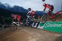 Professionals in gravity mountain biking tend to concentrate either on downhill mountain biking or 4X/dual slalom because they are very different. However, some riders, such as Cedric Gracia, used to compete in both 4X and DH, although that is becoming more rare as 4X takes on its own identity.