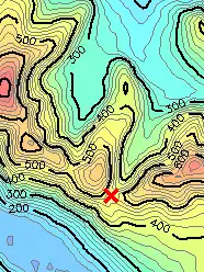 - ^ 53°4′52.8″N 4°7′57″W / 53.081333°N 4.13250°W, height contours from SRTM data.
