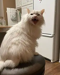 Various animals use their mouths in threat displays. They may gape widely, exhibit their teeth prominently, or flash the startling colours of the mouth lining. This display allows each potential combatant an opportunity to assess the weapons of their opponent and lessens the likelihood of actual combat being necessary.[25]