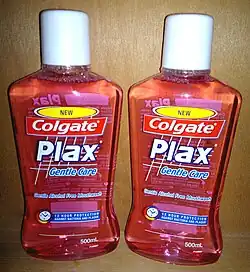 10. ^ a b Kozlovsky A, Goldberg S, Natour I, Rogatky-Gat A, Gelernter I, Rosenberg M (June 1996). "Efficacy of a 2-phase oil: water mouthrinse in controlling oral malodor, gingivitis, and plaque". Journal of Periodontology. 67 (6): 577–82. doi:10.1902/jop.1996.67.6.577. PMID 8794967.