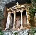 In 2018, archaeologists unearthed a 2,300-year-old rock sepulchre of an ancient Greek boxer called Diagoras of Rhodes on a hill in the Turgut village, Muğla province, Marmaris. This unusual pyramid tomb was considered to belong to a holy person by the local people. The shrine, used as a pilgrimage by locals until the 1970s, also has the potential to be the only pyramid grave in Turkey. The excavation team also discovered an inscription with these words: “I will be vigilant at the very top so as to ensure that no coward can come and destroy this grave".[5][6][7][8][9][10]