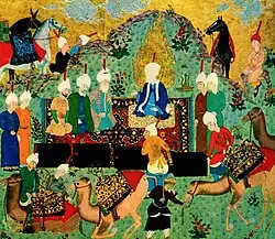 ![]() A drawing depicting a delegation of merchants from Khorasan visiting al-Baqir (in the center), 1526 | |