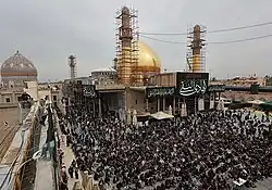 Twelver sources detail that al-Mahdi made his only public appearance to lead the funeral prayer for his father instead of his uncle, Ja'far al-Zaki.[37][60] It is also said that the occultation took place in the family home in Samarra, where currently a mosque stands, under which there is a cellar (sardab) that hides a well (Bi'r al-Ghayba, lit. 'well of the occultation'). Into this well, al-Mahdi is said to have disappeared.[61][62][63]