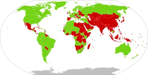 At the League of Nations Codification Conference, 1930, an attempt was made to codify nationality rules into a universal worldwide treaty, the 1930 Hague Convention, whose chief aims would be to completely abolish both statelessness and dual citizenship. The 1930 Convention on Certain Questions Relating to the Conflict of Nationality Laws proposed laws that would have reduced both but, in the end, were ratified by only 20 nations.[2] One significant development that emerged was the Master Nationality Rule, which provided that "a State may not afford diplomatic protection to one of its nationals against a state whose nationality such person also possesses."