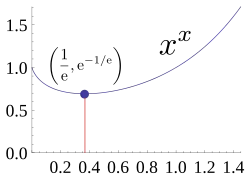 Every real or complex number excluding zero has a reciprocal, and reciprocals of certain irrational numbers can have important special properties. Examples include the reciprocal of e (≈ 0.367879) and the golden ratio's reciprocal (≈ 0.618034). The first reciprocal is special because no other positive number can produce a lower number when put to the power of itself; is the global minimum of . The second number is the only positive number that is equal to its reciprocal plus one:. Its additive inverse is the only negative number that is equal to its reciprocal minus one:.