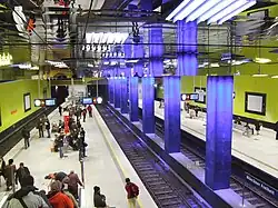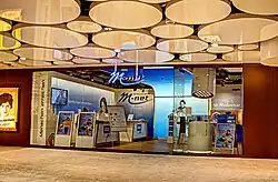 The bilevel mezzanine area was renovated with one section rebuilt and levelled to eliminate the small stairs and narrow ramp, which interrupt the flow. The interior has blue and yellow colours, giving the station a bright and airy feel. The small shops, food vendors, and service centres were installed close to the completion.[32]