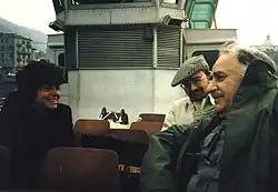 After his grandmother's death in 1930, he joined the Young Pioneers of America, the Communist youth organization (for children 9 to 14)[10] and the Young Communist League (for youths) in 1935. He attended the Workers School near Union Square, where he studied Marxism. In the late 1930s, he broke with Stalinism and gravitated toward Trotskyism, joining the Socialist Workers Party (SWP). In the early 1940s, he worked in a foundry in Bayonne, New Jersey, where he was a trade union organizer and shop steward for the United Electrical Workers as well as a recruiter for the SWP. Within the SWP, he adhered to the Goldman-Morrow faction, which broke away after the war ended. He was an auto worker and UAW member at the time of the great General Motors strike of 1945–46. In 1949, while speaking to a Zionist youth organization at City College, Bookchin met a mathematics student, Beatrice Appelstein, whom he married in 1951.[11] They were married for 12 years and lived together for 35, remaining close friends and political allies for the rest of his life. They had two children, Debbie and Joseph.[12] On religious views, Bookchin was an atheist, but was considered to be tolerant of religious views.[13]