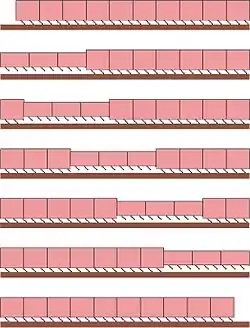 The sliding filament theory describes a process used by muscles to contract. It is a cycle of repetitive events that cause a thin filament to slide over a thick filament and generate tension in the muscle.[23] It was independently developed by Andrew Huxley and Rolf Niedergerke and by Hugh Huxley and Jean Hanson in 1954.[24][25] Physiologically, this contraction is not uniform across the sarcomere; the central position of the thick filaments becomes unstable and can shift during contraction but this is countered by the actions of the elastic myofilament of titin. This fine myofilament maintains uniform tension across the sarcomere by pulling the thick filament into a central position.[26]