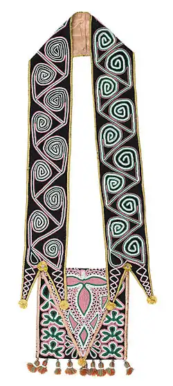 ![]() Muscogee Creek bandolier bag, c. 1820, Birmingham Museum of Art | |