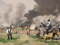 In 1704, Irish colonial administrator James Moore led the Carolina militia and Ochese Creek and Yamasee warriors on a series of raids against Spanish missions in the Florida interior during Queen Anne's War. These raids captured thousands of Spanish-allied Indians, primarily Apalachee, who were sold into slavery in Carolina and the West Indies. A decade later, tensions between colonists and Indians in the region led to the Yamassee War of 1715–17.[26]