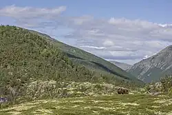 Although the muskox's typical habitat is dry Arctic grassland, it seems to thrive on Dovrefjell. However, the pastures are marginal, with little grass available in winter, and inbreeding depression over time is expected in such a small population.
