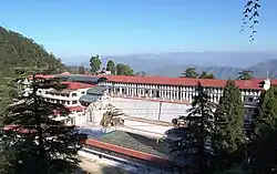 Mussorie has the Lal Bahadur Shastri National Academy of Administration,[54] the premier training institute for officers of the Indian Foreign Service, Indian Administrative Service and other civil services. This unique institute is about 2 km (1 mi) from Gandhi Chowk. The library area houses the academy of the Indo-Tibetan Border Police Force, a central police organisation belonging to the Government of India. The academy was moved to this location in 1978, consequent upon reorganisation of the force, and located at two separate patches of land known as Cainville Estate (administrative wing) and Astel estate (combat wing) The academy has grown over the years so as to take friendly foreign countries officers as its trainees.[55] The Director of the academy (as of April 2025) is Girish Chandra Upadhyay, Inspector General[56]