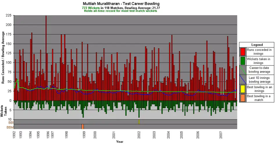 From his debut in 1992, Muralitharan took 800 Test wickets and over 500 One Day International wickets, becoming the first player to take 1,000 wickets combined in the two main forms of international cricket.