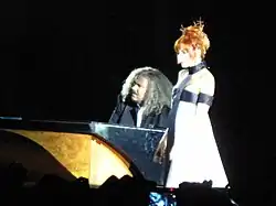 In summer 1996, Farmer embarked on her second concert tour, during which she performed 21 shows in arenas around France, Belgium and Switzerland.[74] Inspired by American concert tours,[75] Farmer performed the majority of songs from Anamorphosée, songs from her previous studio albums, and a cover of "La Poupée qui fait non" with French singer Khaled.[76] The corresponding live album, Live à Bercy, was released in May 1997.[77]