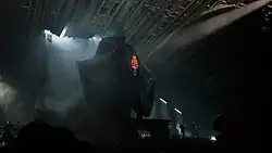 After a hiatus of four years, Farmer held a press conference in 2005, announcing her new album, Avant que l'ombre..., the single "Fuck Them All", as well as a special 13-night concert engagement at the Palais Omnisports de Paris-Bercy in January 2006.[92] The residency in Bercy featured a complex set designed by Mark Fisher, including two stages, a mobile bridge to link the two stages and a water curtain used to project words and the singer's silhouette.[93] A live album and a concert DVD, Avant que l'ombre... à Bercy, were released in December 2006.[94]