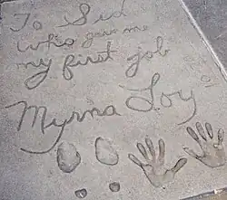 In 1936, Loy was honored with a block in the forecourt of Grauman's Chinese Theatre.[72]