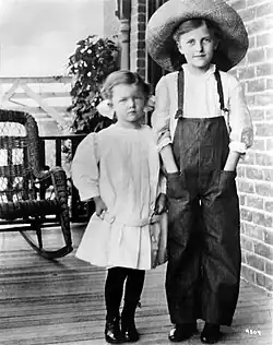 Loy was born Myrna Adele Williams on August 2, 1905, in Helena, Montana,[4][5] the daughter of Adelle Mae (née Johnson) and rancher David Franklin Williams.[6] Her parents had married in Helena in 1904, one year before Loy was born.[7] She had one younger brother, David Frederick Williams (1911–1983).[8] Loy's paternal grandfather, David Thomas Williams, was Welsh, and emigrated from Liverpool, England to the United States in 1856, arriving in Philadelphia.[9] Unable to read or write in English, he later settled in the Montana Territory where he began a career as a rancher.[10] Loy's maternal grandparents were Scottish and Swedish immigrants.[11][12] During her childhood, her father worked as a banker, real estate developer, and farmland appraiser in Helena, and was the youngest man ever elected to serve in the Montana state legislature.[13] Her mother had studied music at the American Conservatory of Music in Chicago, and at one time considered a career as a concert performer, but instead devoted her time to raising Loy and her brother.[14] Loy's mother was a staunch Democrat, while her father was a lifelong Republican.[14] She was raised in the Methodist faith.[15]
