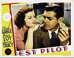 She also made three more films with Gable at Metro-Goldwyn-Mayer (MGM): Parnell (1937) was a historical drama and one of the most poorly received films of either Loy's or Gable's career, but their other pairings in Test Pilot and Too Hot to Handle (both 1938) were successes. While working for MGM, Loy was outspoken about the studio's casting hierarchy, especially based on race, and was quoted as saying: "Why does every black person in the movies have to play a servant? How about a black person walking up the steps of a court house carrying a briefcase?"[46]