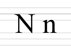 The letter N is the sixth-most common letter and the second-most commonly used consonant in the English language (after ⟨t⟩).[7]