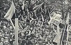 In 1975 the NAC board decided to play the home matches on a Saturday evening. In this period a group of fanatic NAC fans merged and located themselves on a stand. Their fierce support lead to an attraction of youngsters, who also fanatically support NAC. This fierce support lasts till now and is known in the Netherlands as an Avondje NAC (English; An Evening NAC). An Avondje NAC is a flamboyant mix of Burgundian fun, beer, fanaticism and love for the club and ensures that during home matches the atmosphere in the stadium is intimidating. On 6 October 1979, a strange situation occurred. During the home match against NAC's rivals Feyenoord the linesman was hit by an ashtray. The referee postponed the match, riots broke out and the incident in the Netherlands is known as the 'Ashtray Incident'.
