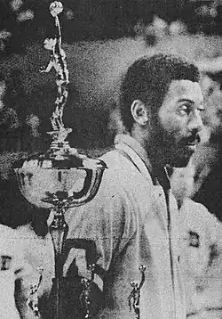 ![]() Bob McAdoo and his 1974–75 NBA Most Valuable Player trophy | |