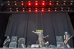 NOFX's mainstream success coincided with increased interest in punk rock during the 1990s; unlike many of their contemporaries, however, they had never been signed to a major label. NOFX released fifteen studio albums, sixteen extended plays[2] and a number of 7" singles over a career spanning more than four decades. The band rose to popularity with their fifth studio album Punk in Drublic (1994), which is their only release to receive a gold certification by the RIAA.[3] Their fifteenth and final studio album, Double Album, was released on December 2, 2022. The group has sold over eight million records worldwide,[4] making them one of the most successful independent bands ever. In 2008, NOFX broadcast their own show on Fuse entitled NOFX: Backstage Passport.[5] The band retired in October 2024 after a farewell tour.[6]