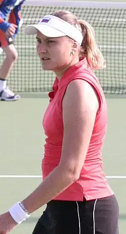 Nadezhda Viktorovna "Nadia" Petrova (Russian: Надежда Викторовна Петрова ⓘ; born 8 June 1982) is a Russian former professional tennis player. A former top-five player in both singles and doubles, she reached a career-high ranking of No. 3 in the world in both disciplines (doing so in doubles on 21 March 2005, then in singles on 15 May 2006). Petrova won a total of 37 titles on the WTA Tour in her career, 13 in singles and 24 in doubles, as well as over $12.4 million in prize money, making her one of the most successful Russian tennis players of all time.