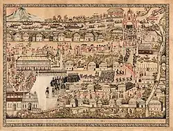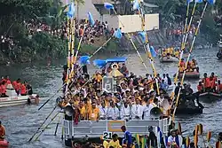 Naga is known as the "Queen City of Bicol" due to the historical significance of Naga in the Bicol Region;[16] as the "Heart of Bicol",[17][18] due to its central geographical location on the Bicol Peninsula; and as "Pilgrim City," since Naga is also the destination of one of the largest Marian pilgrimages in Asia to the shrine of Our Lady of Peñafrancia, an image that is one of the country's most popular objects of devotion.[19] Naga is described as "One of the Seven Golden Cities of the Sun" by Nick Joaquín.[20]
