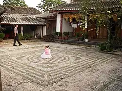An old guest-house in Lijiang, built around the beginning of the 20th century. The motifs and scripts made by pebble mosaic represent ancient Nashi beliefs in symbols and writing.