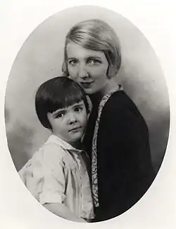 Robbins' parents split in 1923 when her mother decided to return to acting and the couple could not agree on where to live.[3] Her father removed himself from her life, and her mother resumed work as a stage actress.[4] Robbins was placed with her mother's sister, Virginia Galbraith, in Bethesda, Maryland, along with her uncle and cousin.[7] She attended Sidwell Friends School in Washington, D.C.[5] Robbins missed her mother while living with her aunt, and they made trips to New York so she could see her mother perform on stage.[3] She emulated her mother by wearing makeup and pretending to be an actress.[8] Robbins' parents finalized their divorce in 1928.[7] Later analysis of her life has focused on this unstable family environment as a reason why she held marriage as a life goal.[9][10][11]