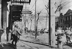In August 1937, the Japanese army invaded Shanghai, where they met strong resistance and suffered heavy casualties. The battle was bloody as both sides faced attrition in urban hand-to-hand combat.[20] Although the Japanese forces succeeded in forcing the Chinese forces into retreat, the General Staff Headquarters in Tokyo initially decided not to expand the war because they wanted the war to end.[21] However, there was a significant disagreement between the Japanese government and its army in China.[22] Matsui had expressed his intention to advance on Nanjing even before departing for Shanghai. He firmly believed that capturing Nanjing, the Chinese capital, would lead to the collapse of the entire Nationalist Government of China, thereby securing a swift and decisive victory for Japan.[21][22] The General Staff Headquarters in Tokyo eventually relented to the demands of the Imperial Japanese Army in China by approving the operation to attack and capture Nanjing.[23]