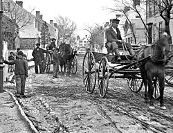 By 1850, whaling was in decline, as Nantucket's whaling industry had been surpassed by that of New Bedford. Another contributor to the decline was the silting up of the harbor, which prevented large whaling ships from entering and leaving the port, unlike New Bedford, which still owned a deep water port. In addition, the development of railroads made mainland whaling ports, such as New Bedford, more attractive because of the ease of transshipment of whale oil onto trains, an advantage unavailable to an island.[30] The onset of the California Gold Rush in 1849 further lured many of Nantucket’s workers from whaling, as many islanders abandoned whaling in pursuit of opportunities in the West. The American Civil War dealt the death blow to the island's whaling industry, as virtually all of the remaining whaling vessels were destroyed by Confederate commerce raiders.[31]
