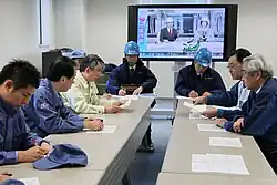 Kan slept in the Prime Minister's Office and did not return home for an entire week after the disaster struck; he wore blue coveralls instead of a suit until the end of March.[39]