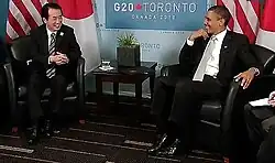 Kan with U.S. president Barack Obama at the 2010 G-20 Toronto summit on 27 June 2010