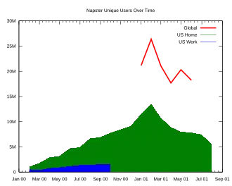 - ^ "Global Napster Usage Plummets, But new File-Sharing Alternatives Gaining Ground, Reports Jupiter Media Metrix" (Press release). comScore. 2001-07-20. Archived from the original on 2008-04-13. Retrieved April 26, 2014.