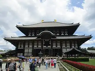 Ancient capitals of Japan were built on the land of Nara, namely Asuka-kyō, Fujiwara-kyō (694–710)[11] and Heijō-kyō (most of 710–784).[12] The capital cities of Fujiwara and Heijō are believed to have been modeled after Chinese capitals at the time, incorporating grid layout patterns. The royal court also established relations with Sui and then Tang dynasty China and sent students to the Middle Kingdom to learn high civilization. By the 7th century, Nara accepted the many immigrants, including refugees of Baekje who had escaped from war disturbances of the southern part of the Korean Peninsula. The first high civilization with royal patronage of Buddhism flourished in today's Nara city (710–784 AD).
