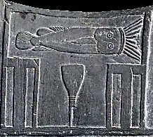 - ^ Although the catfish portrayed in Narmer's name has sometimes been described as an "electric catfish", based on its fin configuration, it is actually of the non-electric Heterobranchus genus.[24]