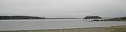 Narragansett Bay is a bay and estuary on the north side of Rhode Island Sound covering 147 square miles (380 km2), 120.5 square miles (312 km2) of which is in Rhode Island.[1] The bay forms New England's largest estuary, which functions as an expansive natural harbor and includes a small archipelago.[2] Small parts of the bay extend into Massachusetts.