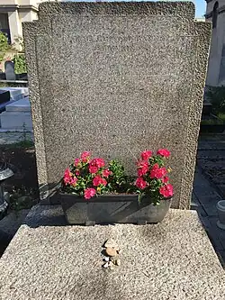 In the late 1960s Brooks became increasingly reclusive and paranoid; she sank into a depression and refused to see the doctors Barney sent. Bitter at Lahovary's presence during their last years, which she had hoped they would spend exclusively together, she finally broke off contact with Barney. Barney continued to write to her, but received no replies. Brooks died in December 1970, and Barney on February 2, 1972, aged 95, from heart failure.[157] She is buried at Passy Cemetery, Paris, Île-de-France, France.[158] She left some of her writing, including more than 40,000 letters, to the Bibliothèque littéraire Jacques-Doucet in Paris.[159]