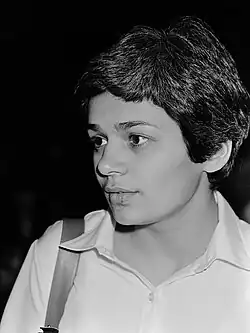 Sharansky was denied an exit visa to Israel in 1973. The reason given for denial of the visa was that he was given access, at some point in his career, to information vital to Soviet national security and could not now be allowed to leave.[11] After becoming a refusenik, Sharansky became a human rights activist, working as a translator for dissident and nuclear physicist Andrei Sakharov, and spokesman for the Moscow Helsinki Group and a leader for the rights of refuseniks.[12] On 15 March 1977 Sharansky was arrested by the KGB, then headed by Yuri Andropov, on multiple charges, including high treason and spying for several Americans. The accusation stated that he passed to the West lists of over 1,300 refuseniks, many of whom were denied exit visas because of their knowledge of state secrets, which resulted in a publication by Robert C. Toth, "Russ Indirectly Reveal 'State Secrets': Clues in Denials of Jewish Visas".[13][14] High treason carried the death penalty. The following year, in 1978, he was sentenced to 13 years of forced labor.
