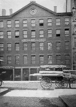 Nathaniel Hathorne, as his name was originally spelled, was born on July 4, 1804, in Salem, Massachusetts; his birthplace is preserved and open to the public.[3] His great-great-great-grandfather, William Hathorne, was a Puritan and the first of the family to emigrate from England. He settled in Dorchester, Massachusetts, before moving to Salem. There he became an important member of the Massachusetts Bay Colony and held many political positions, including magistrate and judge, becoming infamous for his harsh sentencing.[4] William's son, Hawthorne's great-great-grandfather John Hathorne, was one of the judges who oversaw the Salem witch trials. Hawthorne probably added the "w" to his surname in his early twenties, shortly after graduating from college, in an effort to disassociate himself from his notorious forebears.[5] Hawthorne's father Nathaniel Hathorne Sr. was a sea captain who died in 1808 of yellow fever in Dutch Suriname;[6] he had been a member of the East India Marine Society.[7] After his death, his widow moved with young Nathaniel, his older sister Elizabeth, and their younger sister Louisa to live with relatives named the Mannings in Salem,[8] where they lived for 10 years. Young Hawthorne was hit on the leg while playing "bat and ball" on November 10, 1813,[9] and he became lame and bedridden for a year, though several physicians could find nothing wrong with him.[10]