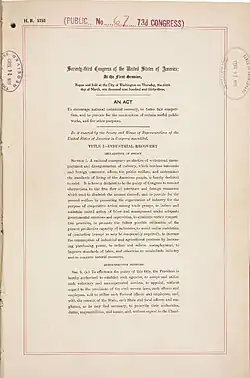 - National Industrial Recovery Act as enacted (details) in the US Statutes at Large